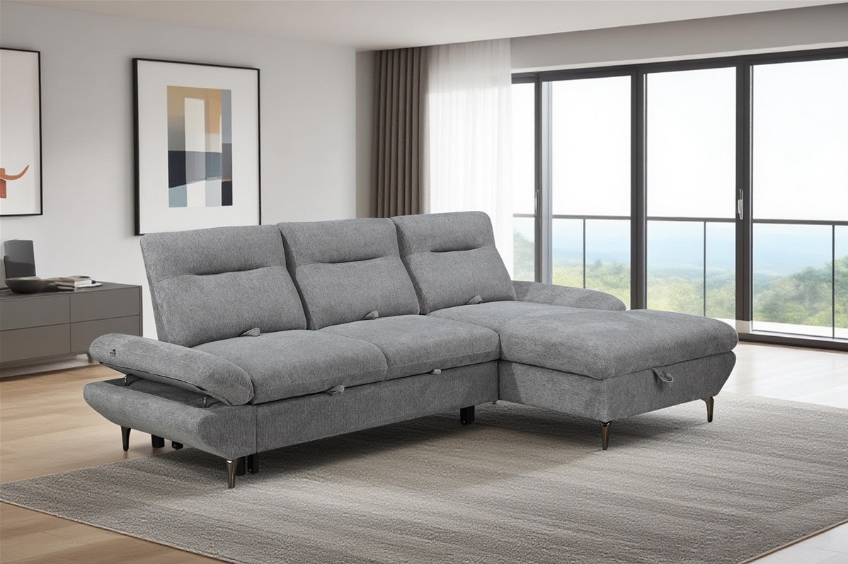 Optez pour ce magnnifique canapé d'angle convertible au design très épuré. Idéal pour les grands espaces possède des coffres de rangement